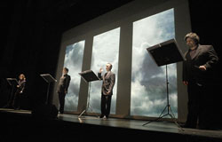 | In carmine planctus (2004 - 16') Pour ensemble de six solistes vocaux et dispositif. Création au Centre Théo Argence de Saint-Priest par les Neue Vocalsolisten de Stuttgart le 19 Mars 2004. InCarminePlanctus (Extrait) |