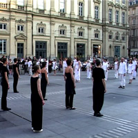 | La traversée (2002 - 40') Pour deux ensembles de cuivres et trois ensembles de cornemuses (où clarinettes). Chorégraphie urbaine de Pierre Deloche (Création civile). Création place des Terreaux/lyon - juin 2002 par l'ensemble orchestral Lyon-Région et l'orchestre national des cornemuses de Lyon.Direction Michel Trux. La traversée (Extrait) |